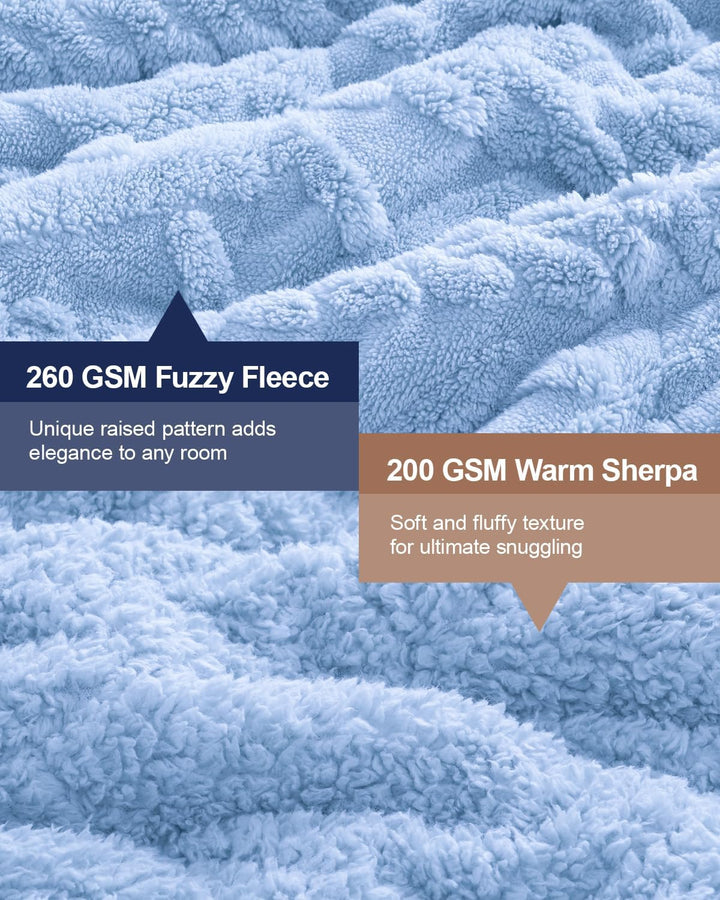 - Dual-sided Sherpa fleece with tufted cable and grid designs