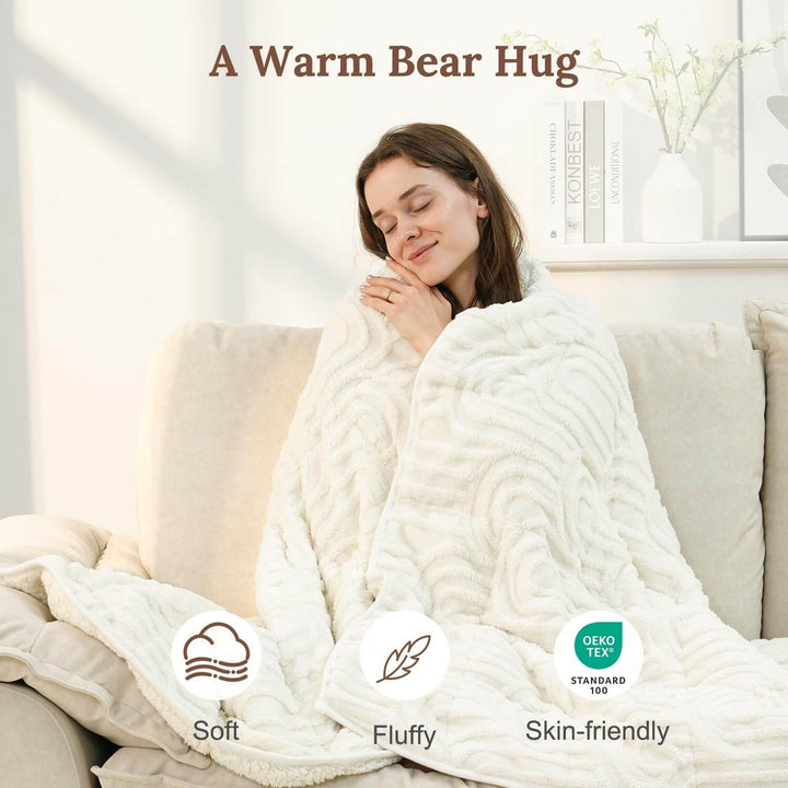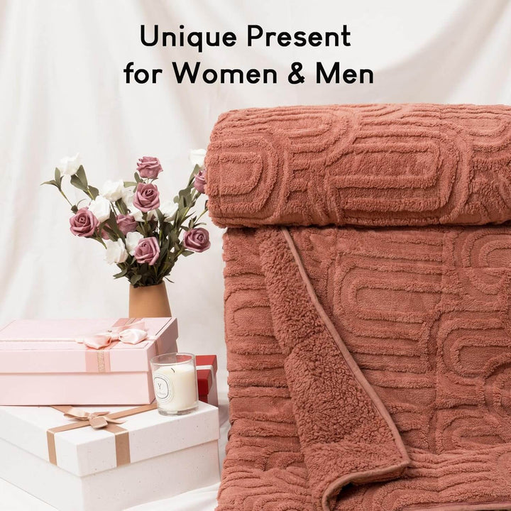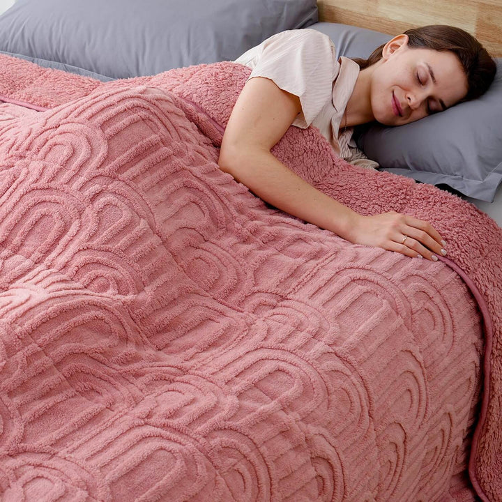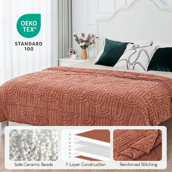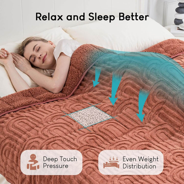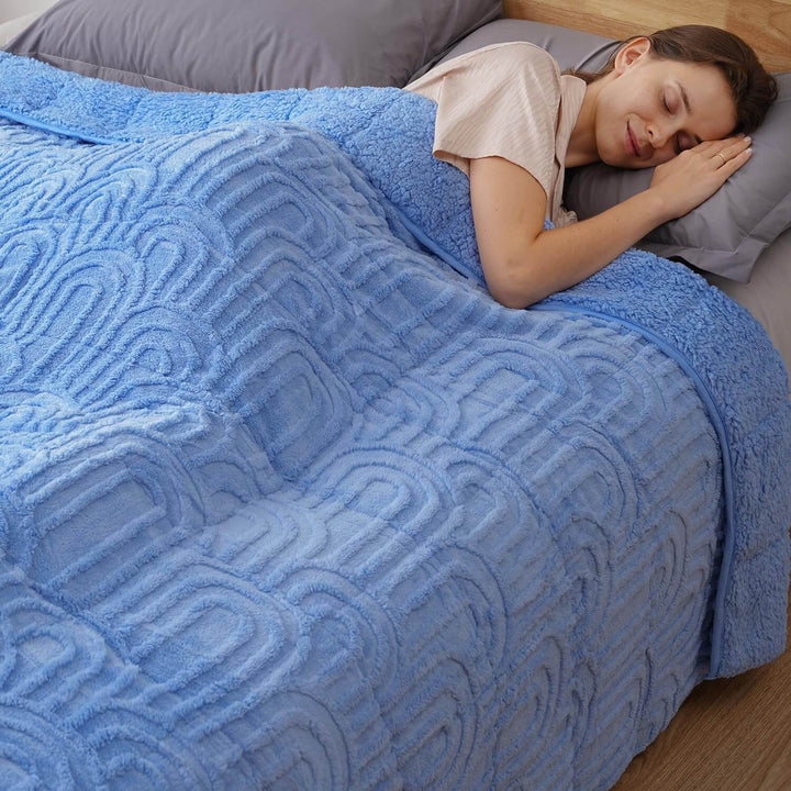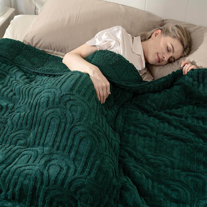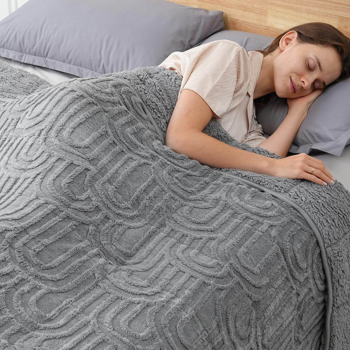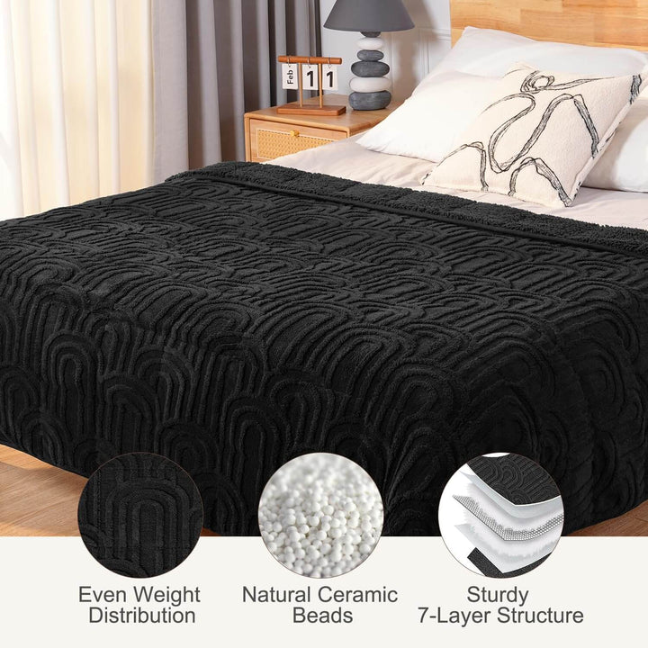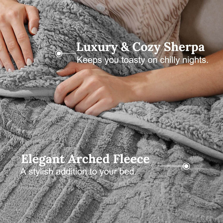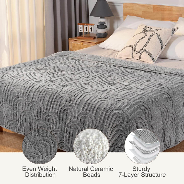 Aesthetic Meets Comfort: This soft weighted blanket is crafted with luxury, fluffy fleece on both sides. The top features a textured arched design, making it a stylish addition to your bed. The reverse is cozy sherpa that keeps you toasty on chilly nights