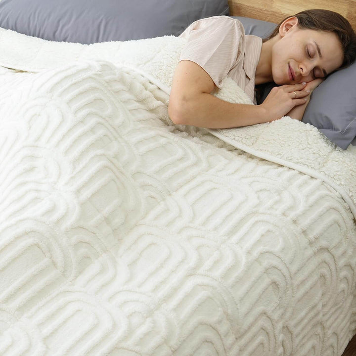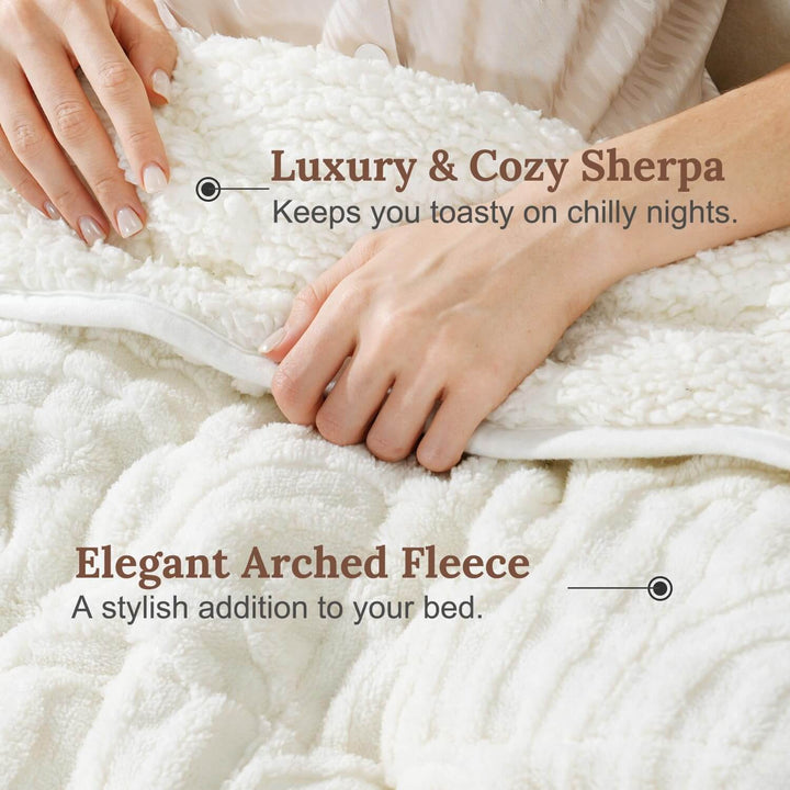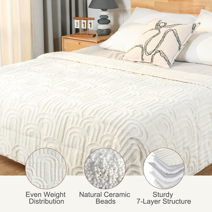 Aesthetic Meets Comfort: This soft weighted blanket is crafted with luxury, fluffy fleece on both sides. The top features a textured arched design, making it a stylish addition to your bed. The reverse is cozy sherpa that keeps you toasty on chilly nights