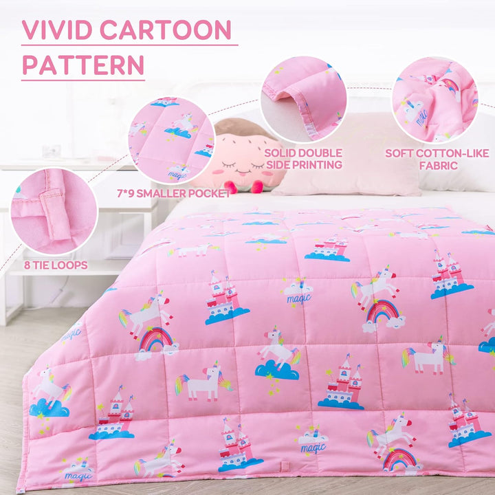 Fancy Pattern Helps Kid Explore: The weighted blanket kids features vivid and cute prints, which satisfies your kid's childish curiosity and boosts their imagination, leading your child into sweet dreamland. In children's dreams, they play happily with dinosaurs.
