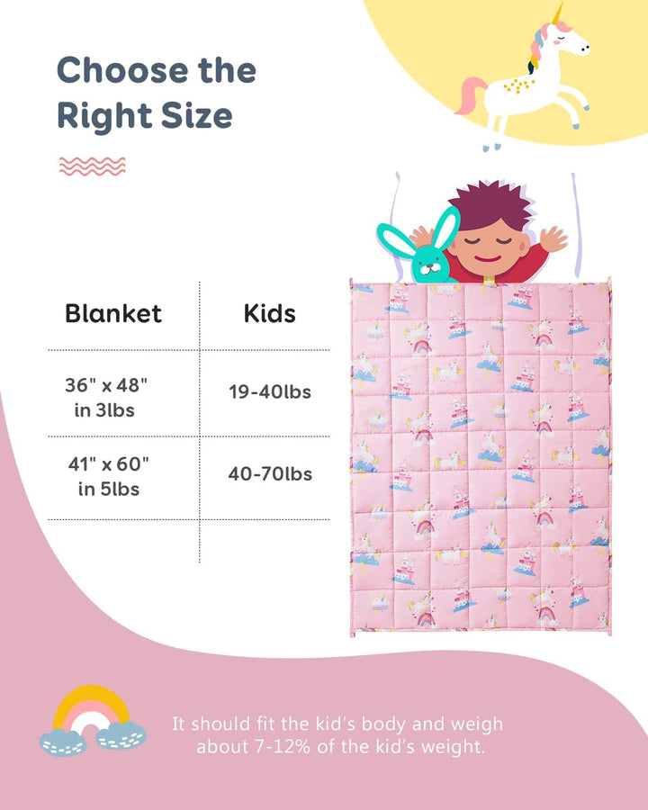 Multi-purpose Use: This weighted blanket 3 lbs is very portable and can be used in school, bedroom, living room, learning room, car, bed, or on the airplane, sofa. The child weighted blanket will make watching tv, reading a book, or snuggling on the couch more relaxing. Perfect as a gift for kids.