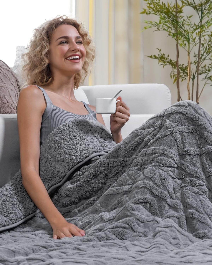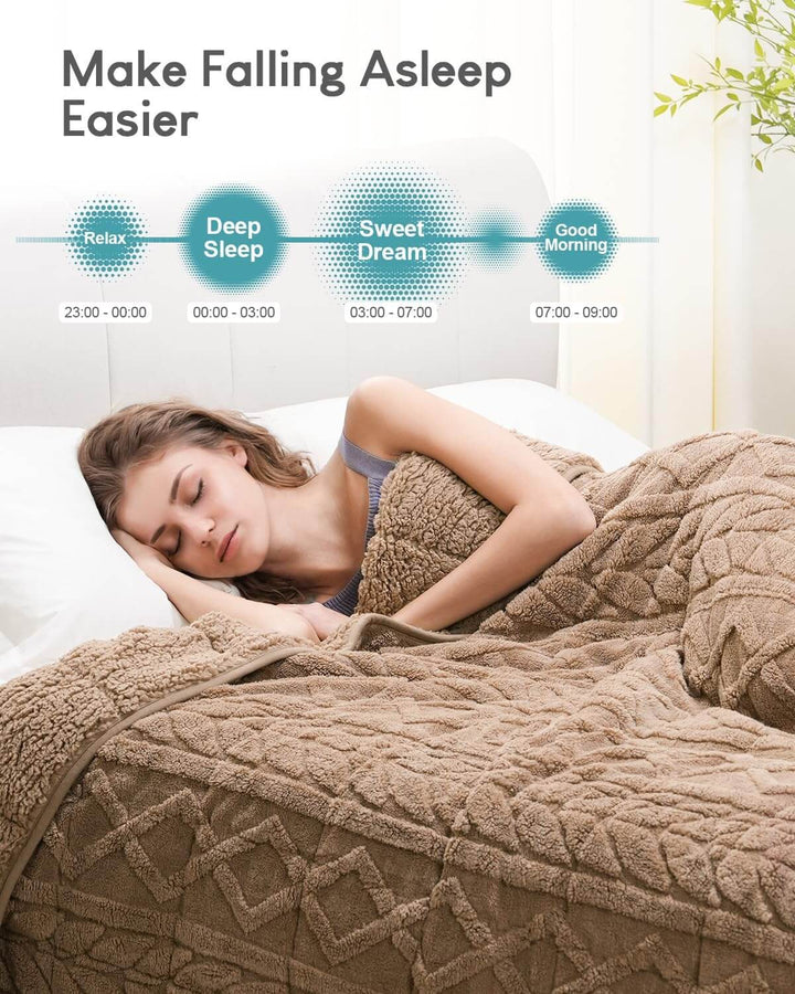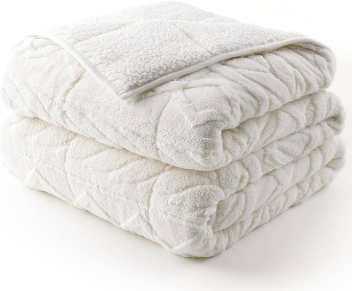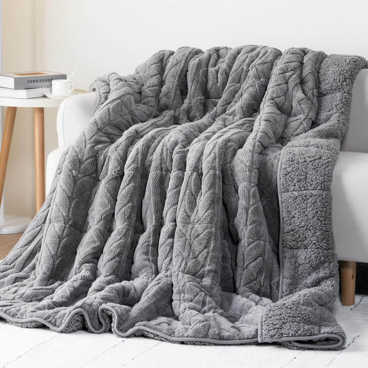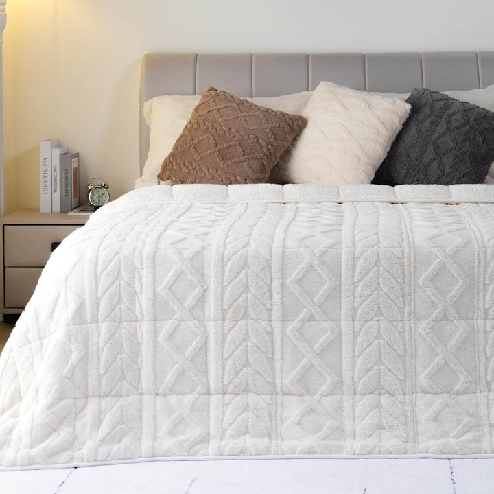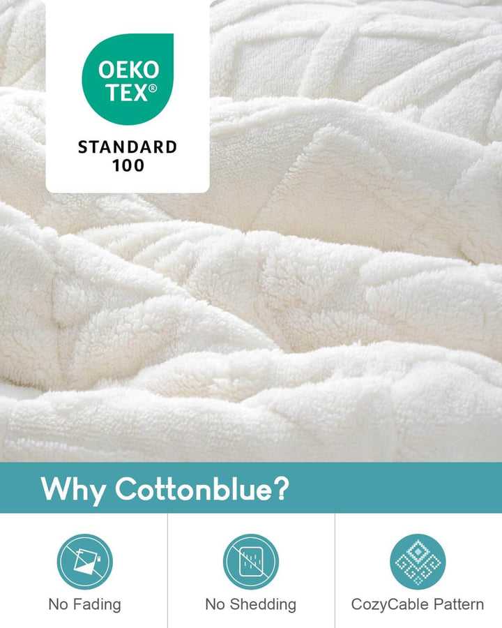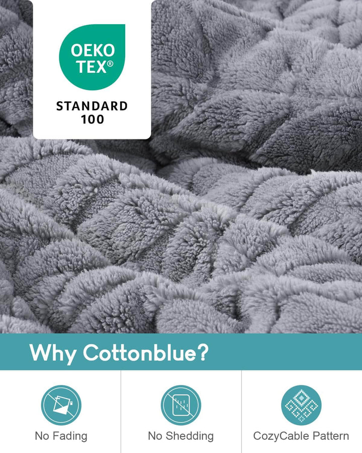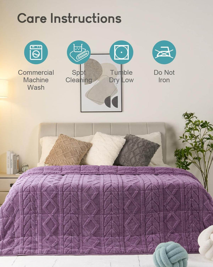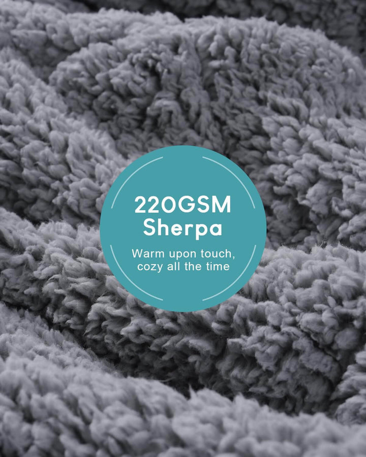 Comfortable and Beautiful: Our weighted blanket for adults features a top layer of 260 GSM raised, cable-knit-like fleece, adding a touch of elegance to any room. The bottom layer is made of 220 GSM fluffy, warm Sherpa