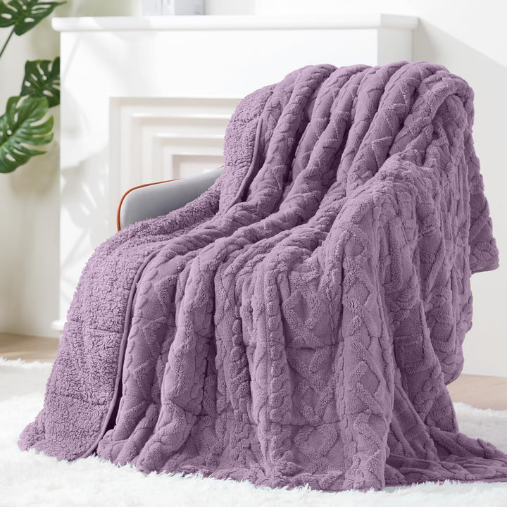 Jacquard Sherpa Weighted Blankets | Chunky Knitting Stripe | Purple