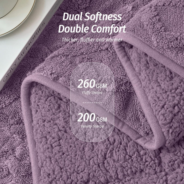 - Dual-sided Sherpa fleece with tufted cable and grid designs