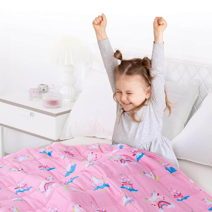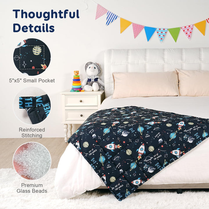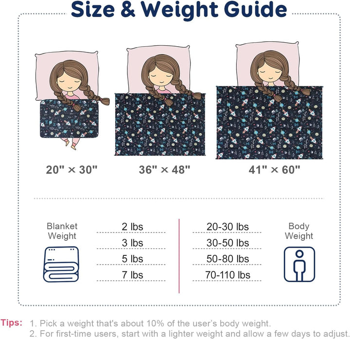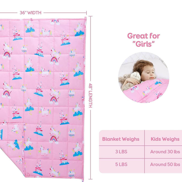 Multi-purpose Use: This weighted blanket 3 lbs is very portable and can be used in school, bedroom, living room, learning room, car, bed, or on the airplane, sofa. The child weighted blanket will make watching tv, reading a book, or snuggling on the couch more relaxing. Perfect as a gift for kids.