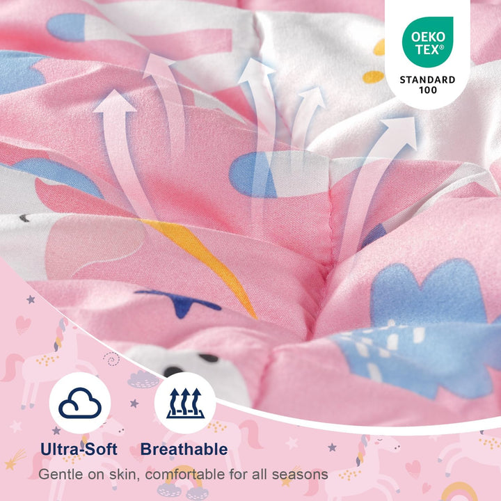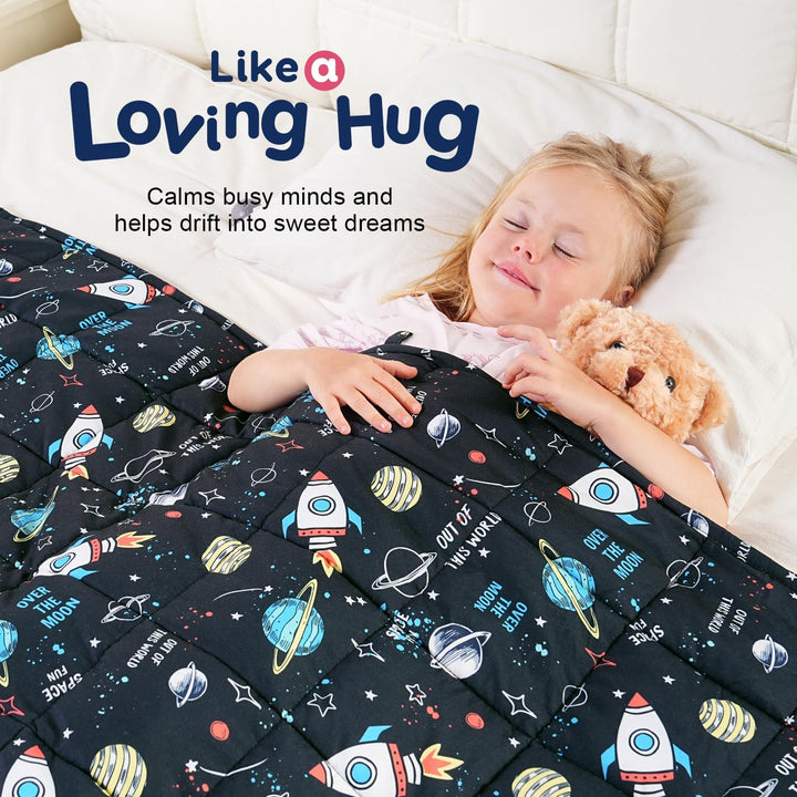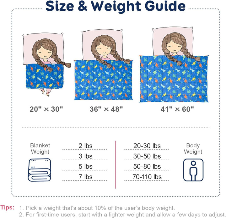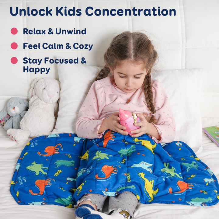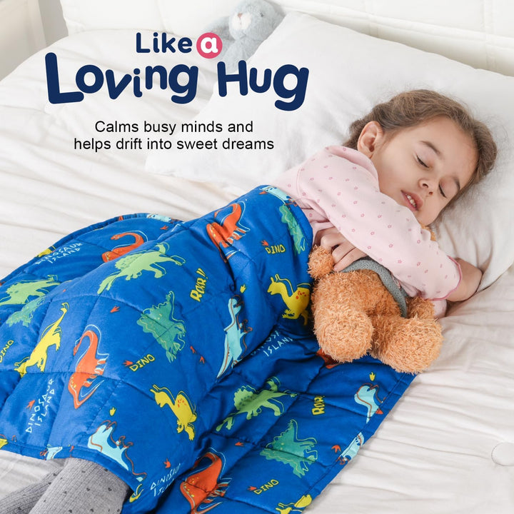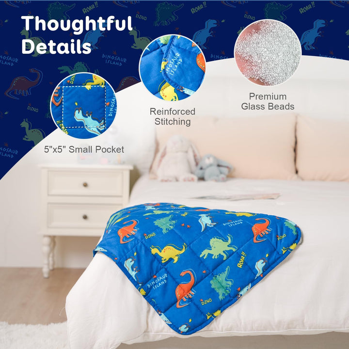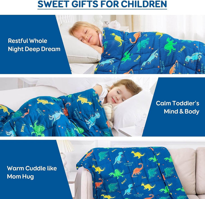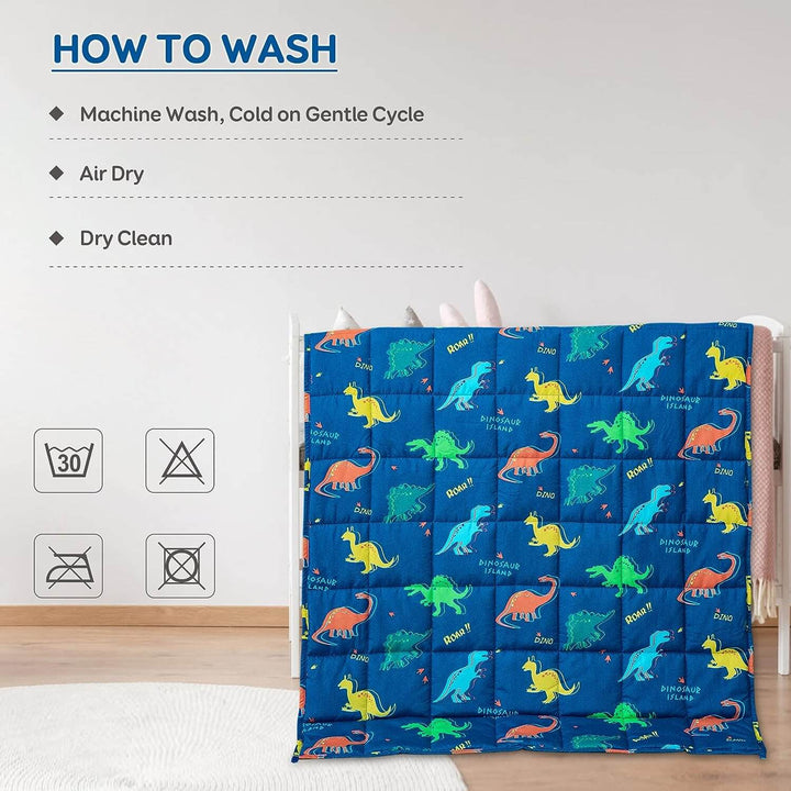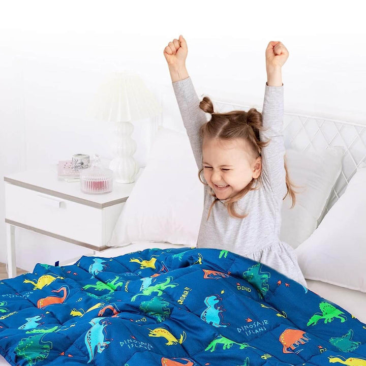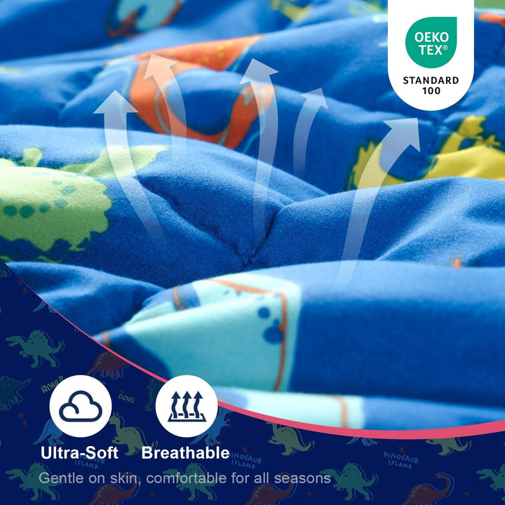Fancy Pattern Helps Kid Explore: The weighted blanket kids features vivid and cute prints, which satisfies your kid's childish curiosity and boosts their imagination, leading your child into sweet dreamland. In children's dreams, they play happily with dinosaurs.