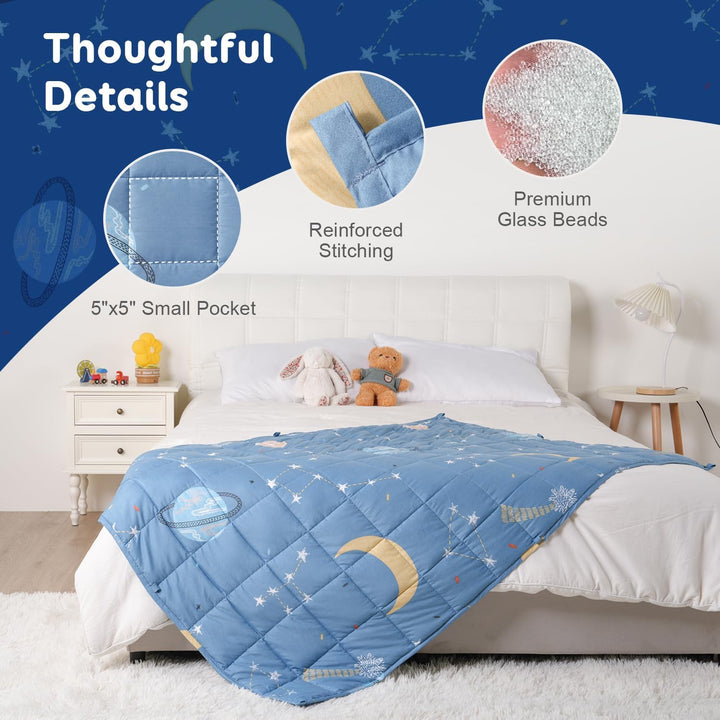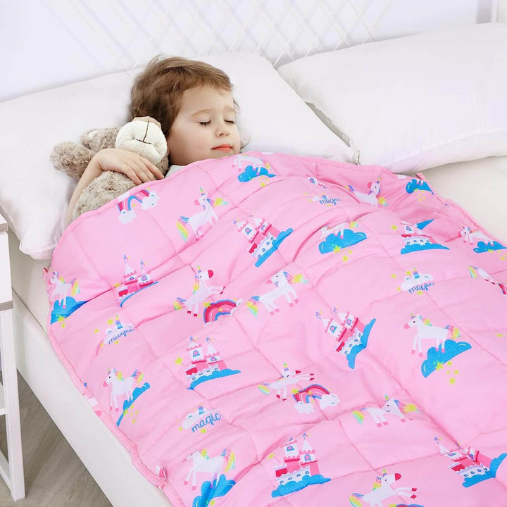 Safe & Sound Deep Sleep: Uttermara weighted blanket for kids is designed with 5-layer construction with evenly distributed non-toxic glass beads. The toddler weighted blanket provides a constant tight hug, which reduces nervous emotion, calms down overactive bodies and minds for a restful sleep.