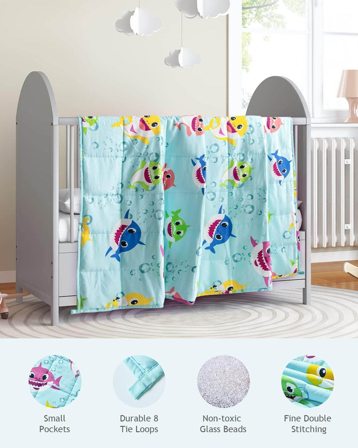Thoughtful Detail Design: The weighted blanket for toddler is made from 100% microfiber, which is cool, breathable, soft, and comfy. The glass beads are divided in small pockets for enabling an even weight, while the strong stitching keeps the beads in place. 8 tie loops can prevent the blanket from shifting inside a duvet cover.