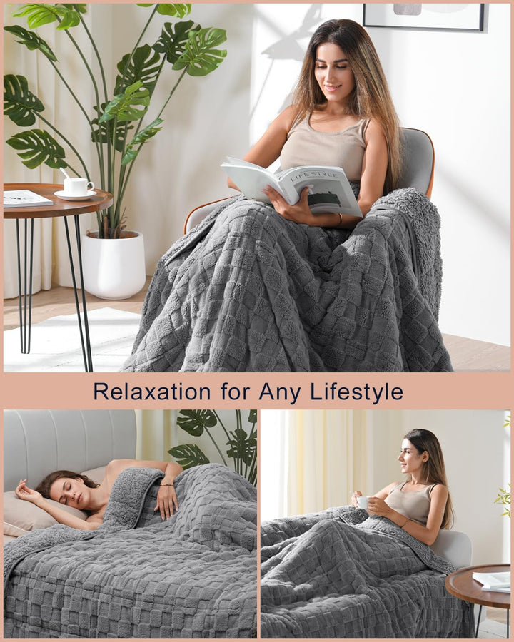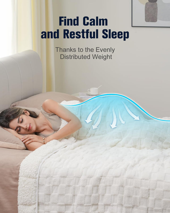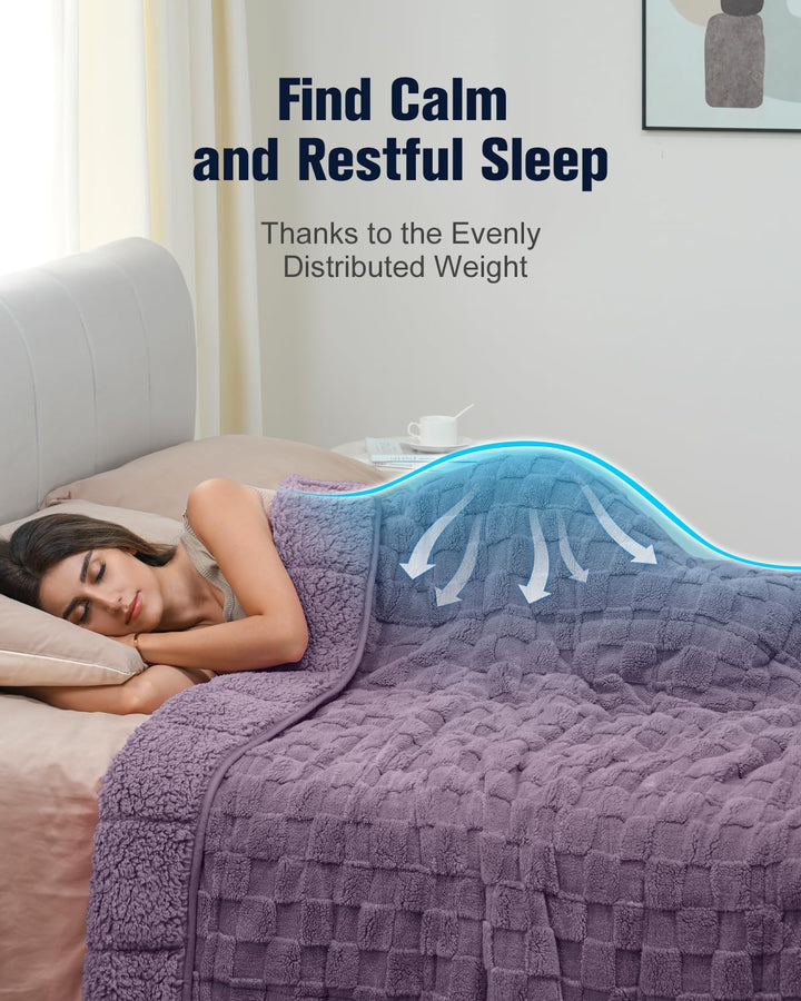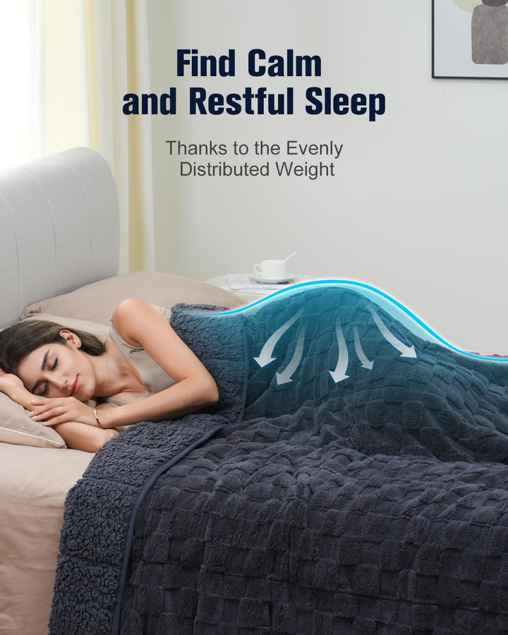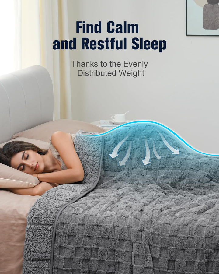 • Snugly Soft Dual-Sided Design: Featuring a fleece top and Sherpa reverse, this weighted blanket offers a soft, wool-like texture for maximum comfort and a refined finish.