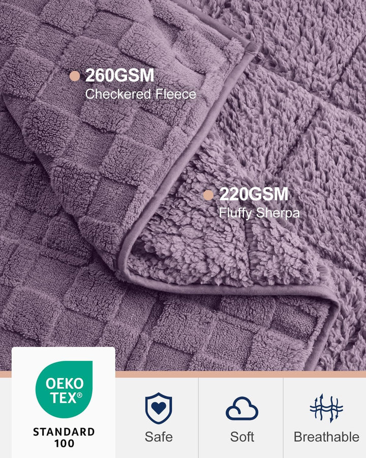• Classy, Uniform Look: Crafted from 220 GSM fleece and Sherpa, the durable materials are resistant to fading, stains, pilling, and shedding—maintaining a pristine, uniform color that complements any décor.