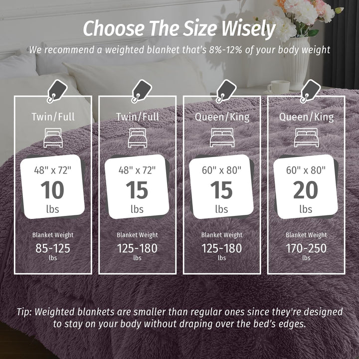 Keywords: weighted blanket, faux fur blanket, sherpa blanket, dual-sided blanket, cozy weighted blanket, soft weighted blanket, fluffy weighted blanket, weighted blanket for sleep, weighted blanket for relaxation, heavy blanket, premium weighted blanket.