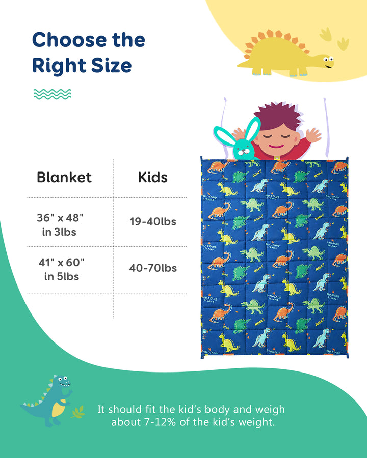 - Perfectly Weighted for Kids: Designed for children, the 3lb blanket is ideal for those weighing approximately 30-36lbs (10-12% of body weight). First-time users are encouraged to try a lighter weight and gradually adapt over 3-7 days for maximum comfort.