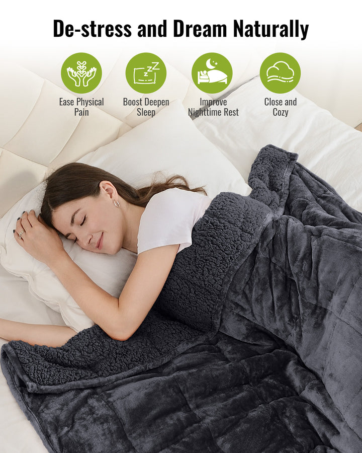 Snugly Soft Dual-Sided Design: Featuring a fleece top and Sherpa reverse, this weighted blanket offers a soft, wool-like texture for maximum comfort and a refined finish.