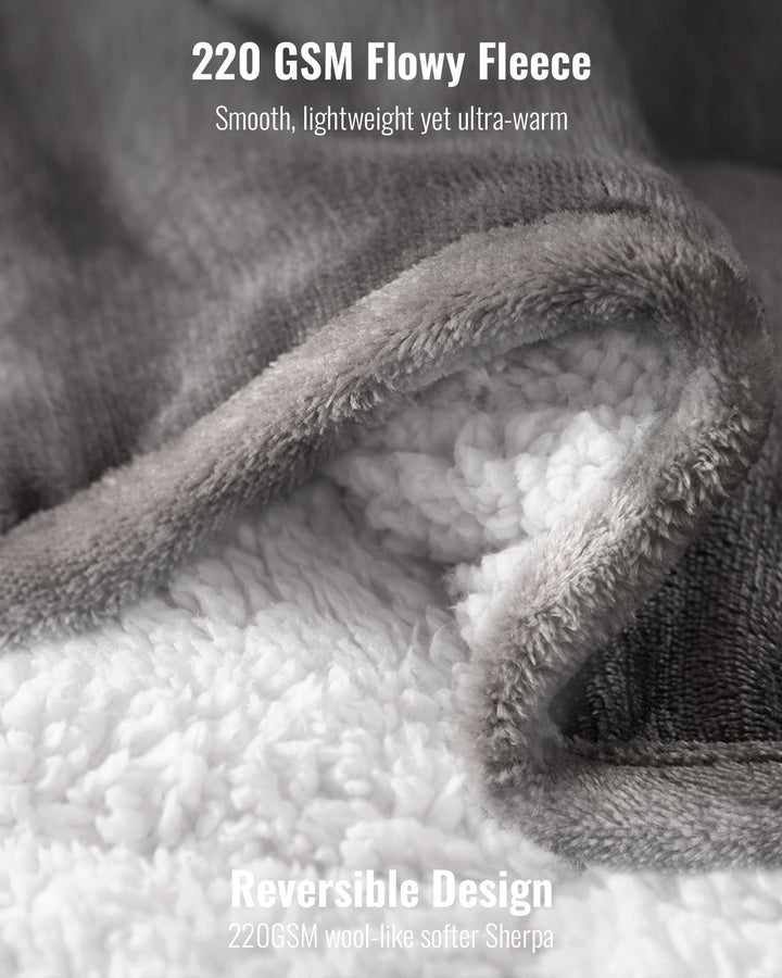 Classy, Uniform Look: Crafted from 220 GSM fleece and Sherpa, the durable materials are resistant to fading, stains, pilling, and shedding—maintaining a pristine, uniform color that complements any décor.