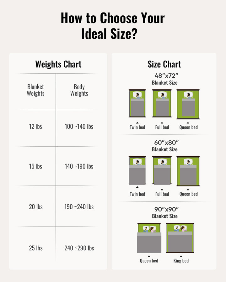 Perfect Sizing: Designed for individual use, this 15 lb blanket is ideal for people weighing between 130 - 180 lbs. For the best fit, choose a blanket about 10% of your body weight, plus one pound. Check our size chart for more details.