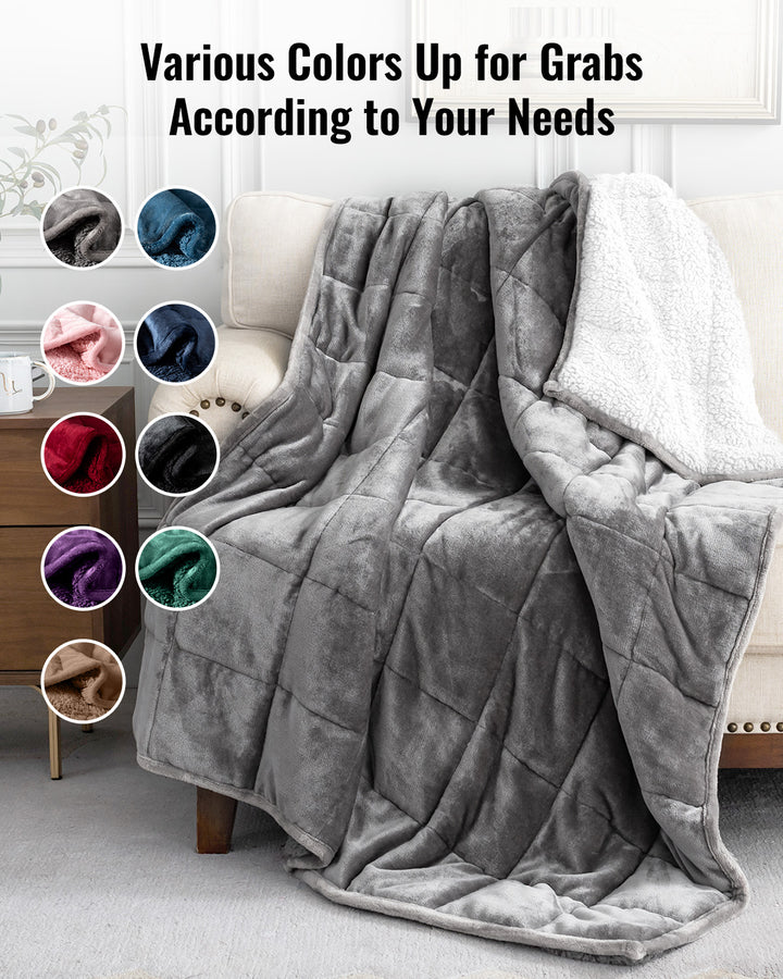 Snugly Soft Dual-Sided Design: Featuring a fleece top and Sherpa reverse, this weighted blanket offers a soft, wool-like texture for maximum comfort and a refined finish.