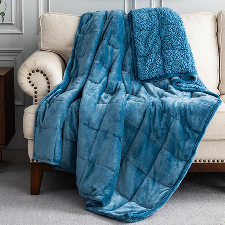 Flannel Sherpa Fleece Weighted Blankets | Slate Blue