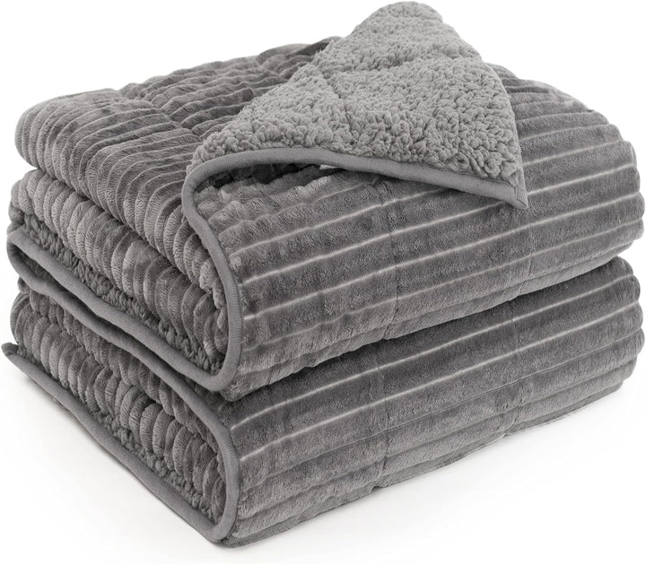 Sherpa Striped Ribbed Weighted Blankets | Grey